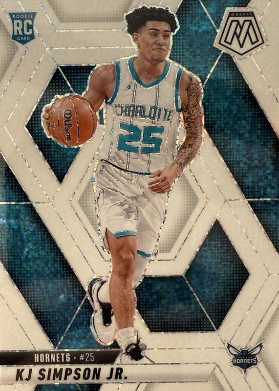 This card is 1 of 66 KJ Simpson Jr.'s card variations in the 2024 Mosaic set being tracked by Sports Card Investor, including Base, Choice Red & Green, Fast Break, Green, and Green Ice.