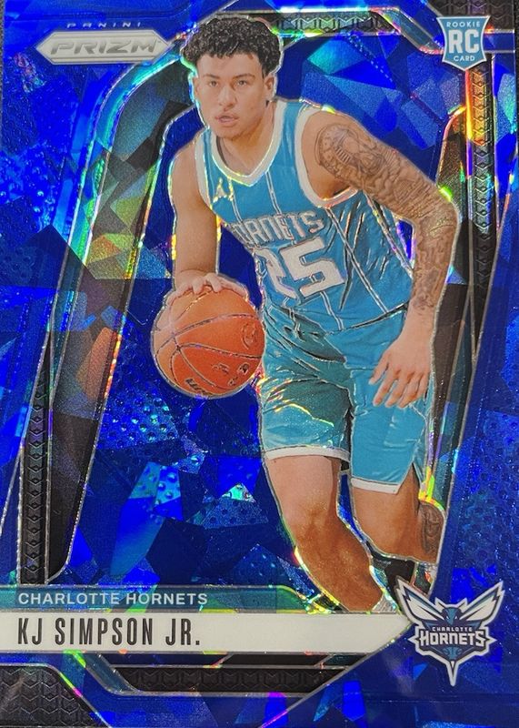 KJ SIMPSON JR. 2024-25 PRIZM BLUE Cracked ICE RC /125 HORNETS ROOKIE RC #247