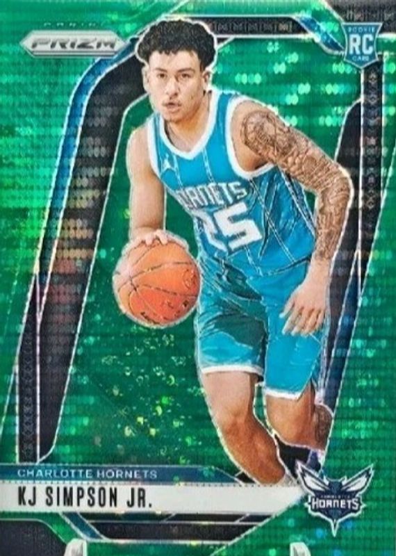This card is 1 of 83 KJ Simpson Jr.'s card variations in the 2024 Prizm set being tracked by Sports Card Investor, including Base, China Variation, Choice Blue Yellow Green, Fast Break, and Green.