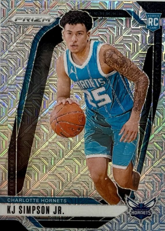 The KJ Simpson Jr. 2024 Prizm #247 Mojo /25 Rookie card in Raw condition has not changed in price in the last 30 days and was last sold for $7.50 .