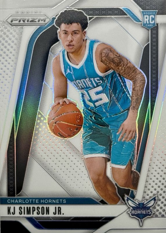 KJ Simpson JR 2024-25 Panini Prizm 044/175 Base White RC Hornets #247