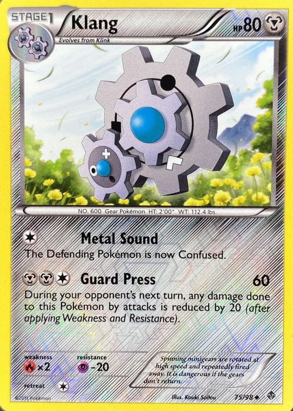 The Klang 2011 Black & White: Emerging Powers #75/98 Reverse Holo card in Raw TCG (Near Mint) condition has not changed in price in the last 30 days and was last sold for $0.99 .