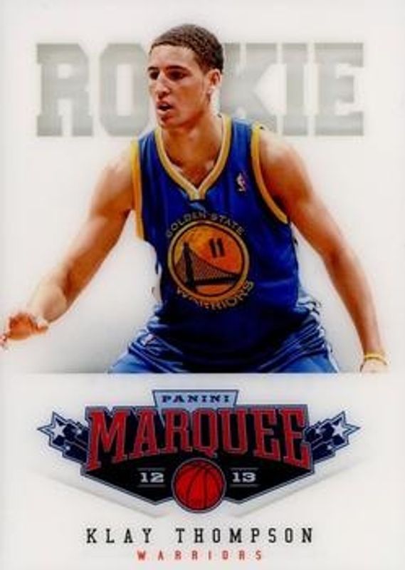 The Klay Thompson 2012 Marquee #473 Base Rookie card is 1 of 11 Klay Thompson's card variations in the 2012 Marquee set being tracked by Sports Card Investor, including #163 Base, #403 Base, #323 Base, #243 Base, and #243 Black Holoboard.