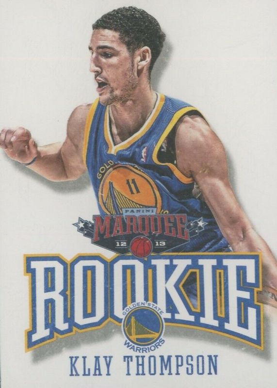 This card is 1 of 5 Klay Thompson's card variations in the 2012 Marquee set being tracked by Sports Card Investor, including Black Holoboard, Laser Cut, Swirlorama, and White PETG.