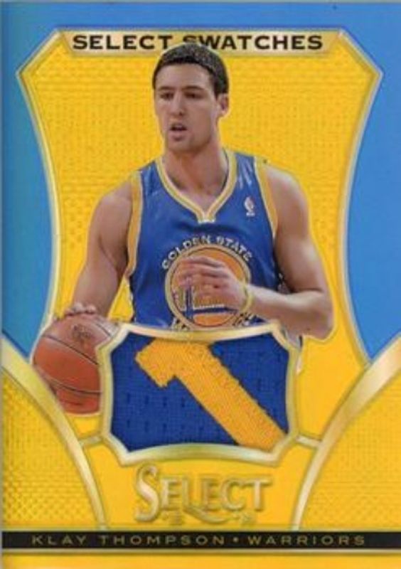 The Klay Thompson 2013 Select #10 Swatches Gold /10 card is 1 of 22 Klay Thompson's card variations in the 2013 Select set being tracked by Sports Card Investor, including #9 Base, #9 Silver, Silver, #9 Purple /99, and #9 Blue /49.