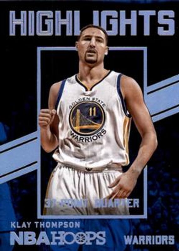 The Klay Thompson 2015 Hoops #3 Highlights card is 1 of 26 Klay Thompson's card variations in the 2015 Hoops set being tracked by Sports Card Investor, including Base, Gold, Green, Red Back, and Blue /399.