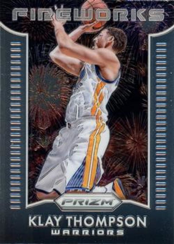 The Klay Thompson 2015 Prizm #16 Fireworks card is 1 of 55 Klay Thompson's card variations in the 2015 Prizm set being tracked by Sports Card Investor, including #388 Base, #180 Base, #373 Base, #180 Flash, and #388 Flash.