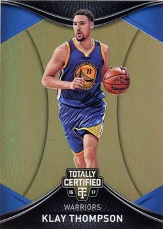 The Klay Thompson 2016 Totally Certified #24 Gold /10 card is 1 of 8 Klay Thompson's card variations in the 2016 Totally Certified set being tracked by Sports Card Investor, including Base, Red /199, Blue /99, Orange /60, and Camo /25.