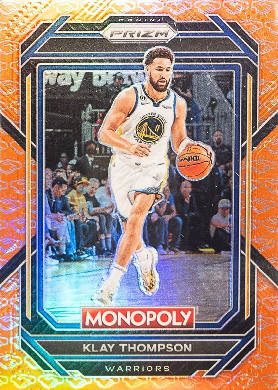 This card is 1 of 33 Klay Thompson's card variations in the 2022 Prizm Monopoly set being tracked by Sports Card Investor, including Base, Black Icons, Boardwalk Blue Tiger Stripe, Free Parking, and GO Space.