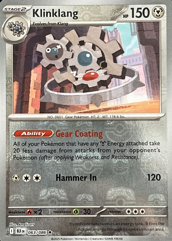 Klinklang 2025 Scarlet & Violet: Black Bolt #063/086 Master Ball Reverse Holo RAW TCG (LIGHTLY PLAYED) Price Guide