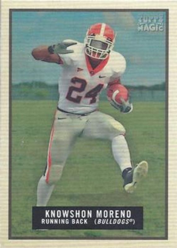 The Knowshon Moreno 2009 Topps Magic #76 Base Rookie card is 1 of 6 Knowshon Moreno's card variations in the 2009 Topps Magic set being tracked by Sports Card Investor, including Mini, Mini Black, 1948 Magic, All Americans, and Autographs.