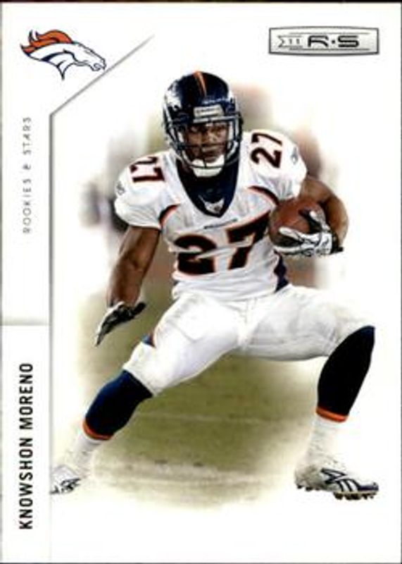 The Knowshon Moreno 2011 Rookies & Stars #46 Base /299 card is 1 of 8 Knowshon Moreno's card variations in the 2011 Rookies & Stars set being tracked by Sports Card Investor, including Gold, Longevity Silver /249, Longevity Silver Holofoil /99, Longevity Gold /49, and Longevity Platinum /25.