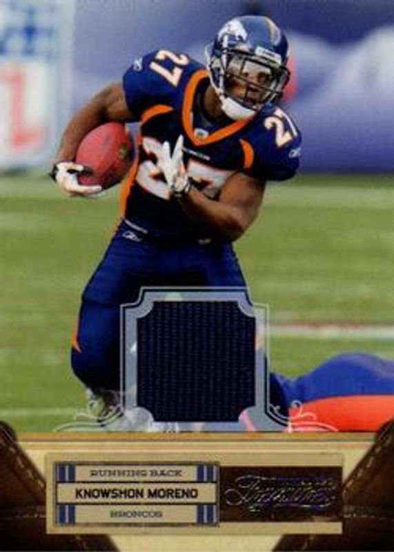 The Knowshon Moreno 2011 Timeless Treasures #52 Jerseys /99 card is 1 of 24 Knowshon Moreno's card variations in the 2011 Timeless Treasures set being tracked by Sports Card Investor, including Base /299, Silver /25, Gold /10, Platinum /1, and Gameday Souvenirs 1st Quarter /190.