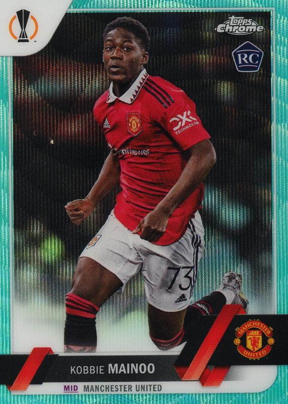 Kobbie Mainoo 2022 Topps Chrome UEFA Club Competitions #118 Aqua Wave Refractor /199 Rookie RAW Price Guide