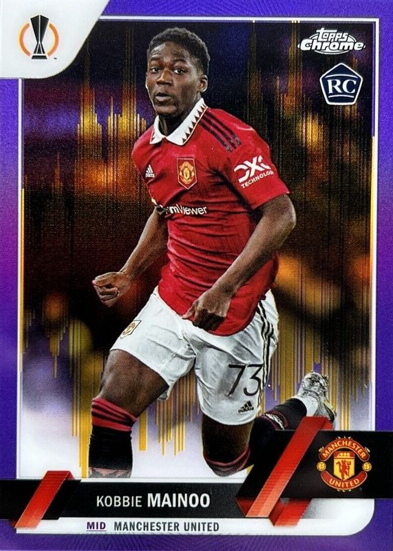 2022-23 Topps Chrome UEFA Kobbie Mainoo #118 Rookie RC Purple & Gold Seismic