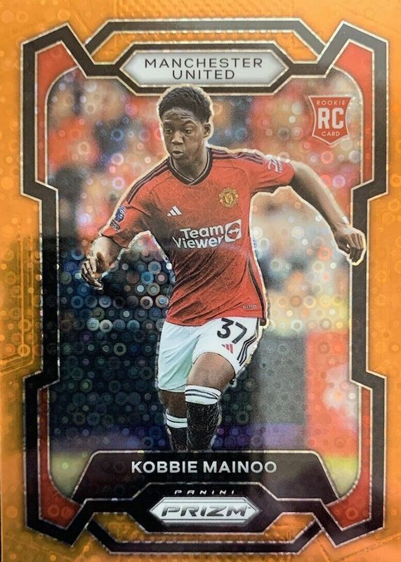 The Kobbie Mainoo 2023 Prizm Premier League #38 Breakaway Orange Rookie card in Raw condition has not changed in price in the last 30 days and was last sold for $2.25 .
