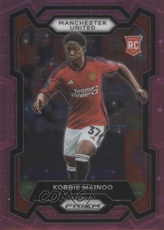 The Kobbie Mainoo 2023 Prizm Premier League #38 Pink Stars Rookie card in Raw condition has not changed in price in the last 30 days and was last sold for $23.54 .