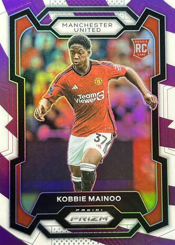 2023 Panini Prizm EPL Kobbie Mainoo RC /92 Purple White Stripes Man Utd #38