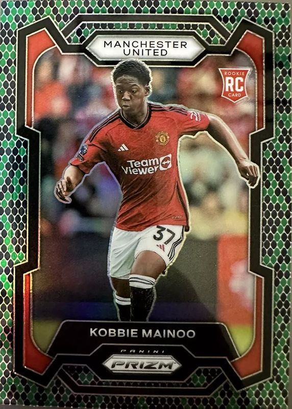 The Kobbie Mainoo 2023 Prizm Premier League #38 Snakeskin /(SSP) Rookie card in Raw condition has not changed in price in the last 30 days and was last sold for $420.00 .