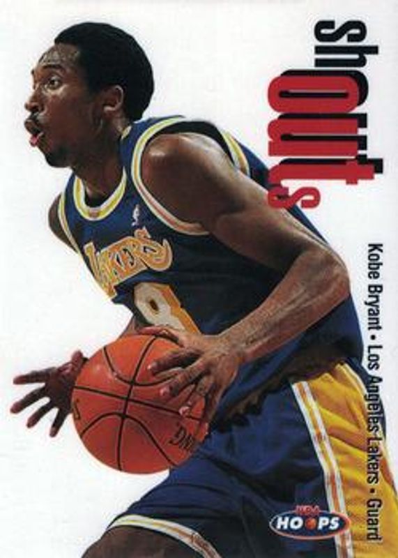 The Kobe Bryant 1998 Hoops #21-SO Shout Outs card is 1 of 8 Kobe Bryant's card variations in the 1998 Hoops set being tracked by Sports Card Investor, including #1 Base, #1 Starting Five /5, #4-PJ Pump Up the Jam, #2-B Bams /250, and #2B Bams /250.