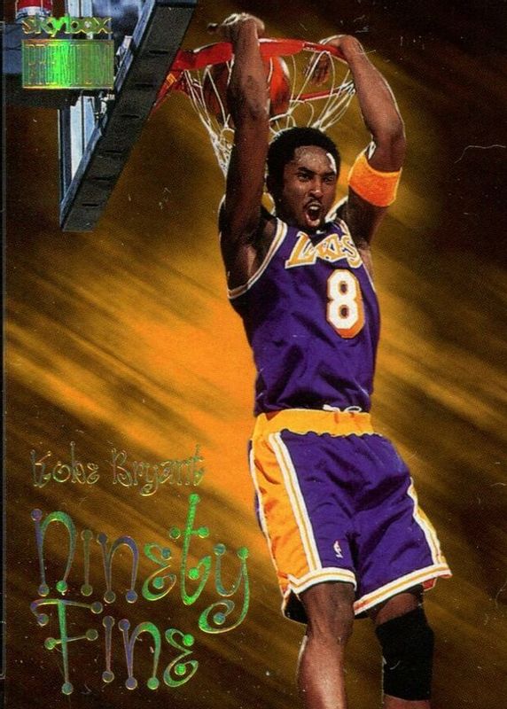 The Kobe Bryant 1998 Skybox Premium #205 Ninety Fine card in Raw condition has moved up $1.04 (+12.3%) in the last 30 days and was last sold for $9.50 .