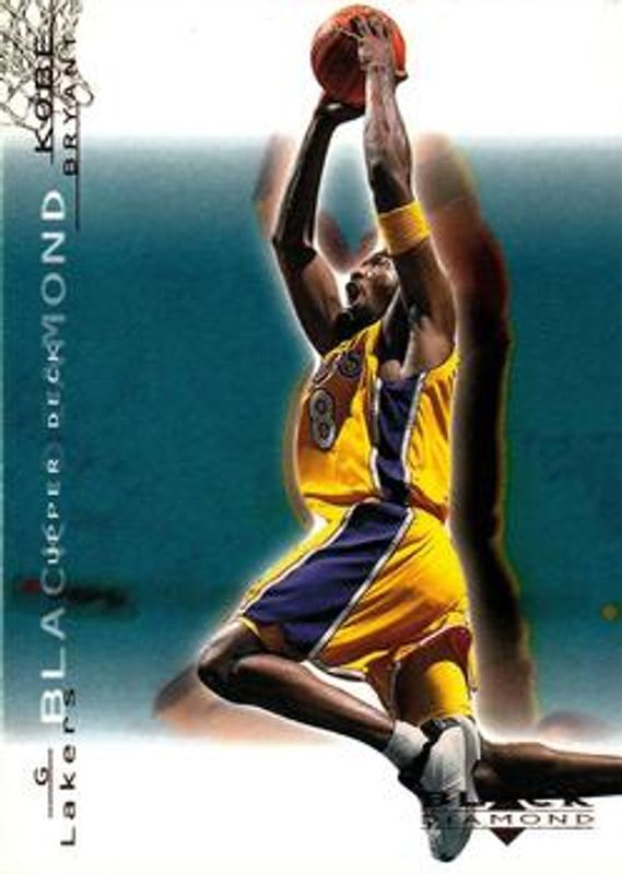 The Kobe Bryant 2000 Upper Deck Black Diamond #38 Base /1000 card is 1 of 7 Kobe Bryant's card variations in the 2000 Upper Deck Black Diamond set being tracked by Sports Card Investor, including Gold /250, Diamonation, Diamond Gallery, Diamond Might, and Diamond Skills.