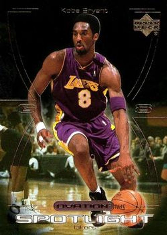 The Kobe Bryant 2000 Upper Deck Ovation #OS1 Spotlight card is 1 of 14 Kobe Bryant's card variations in the 2000 Upper Deck Ovation set being tracked by Sports Card Investor, including Base /2000, Standing Ovation /50, Center Stage, Lead Performers, and Super Signatures.