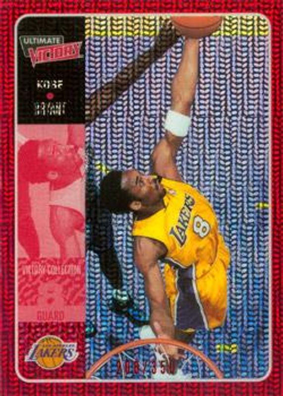 The Kobe Bryant 2000 Upper Deck Ultimate Victory #26 Victory Collection /350 card is 1 of 69 Kobe Bryant's card variations in the 2000 Upper Deck Ultimate Victory set being tracked by Sports Card Investor, including #61 Base /1500, #62 Base /1500, #63 Base /1500, #64 Base /1500, and #65 Base /1500.
