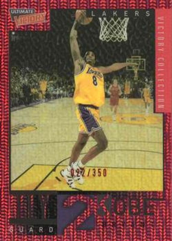 The Kobe Bryant 2000 Upper Deck Ultimate Victory #68 Victory Collection /350 card is 1 of 69 Kobe Bryant's card variations in the 2000 Upper Deck Ultimate Victory set being tracked by Sports Card Investor, including #61 Base /1500, #62 Base /1500, #63 Base /1500, #64 Base /1500, and #65 Base /1500.
