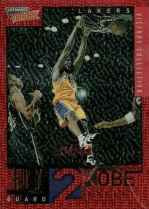 The Kobe Bryant 2000 Upper Deck Ultimate Victory #69 Victory Collection /350 card is 1 of 69 Kobe Bryant's card variations in the 2000 Upper Deck Ultimate Victory set being tracked by Sports Card Investor, including #61 Base /1500, #62 Base /1500, #63 Base /1500, #64 Base /1500, and #65 Base /1500.
