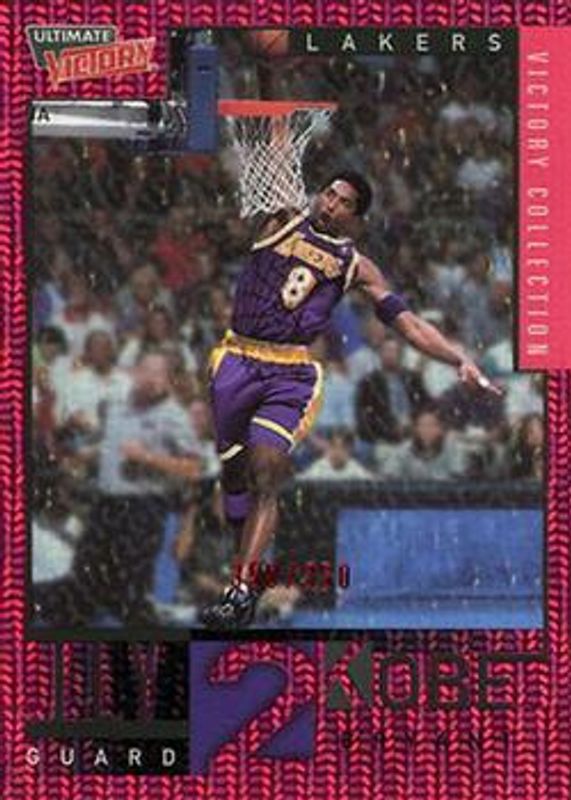 The Kobe Bryant 2000 Upper Deck Ultimate Victory #75 Victory Collection /350 card is 1 of 69 Kobe Bryant's card variations in the 2000 Upper Deck Ultimate Victory set being tracked by Sports Card Investor, including #61 Base /1500, #62 Base /1500, #63 Base /1500, #64 Base /1500, and #65 Base /1500.