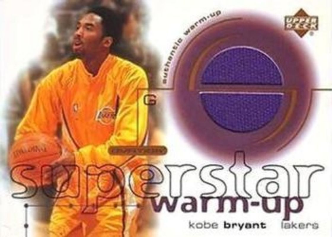 The Kobe Bryant 2001 Upper Deck Ovation #KB Superstar Warm Ups card is 1 of 3 Kobe Bryant's card variations in the 2001 Upper Deck Ovation set being tracked by Sports Card Investor, including Base, and Superstar Warm Ups Autographs.
