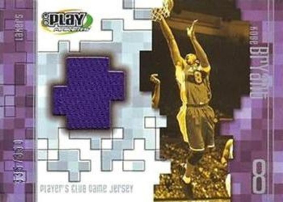 The Kobe Bryant 2001 Upper Deck PlayMakers Limited #KB-J Player's Club Game Jersey /350 card is 1 of 15 Kobe Bryant's card variations in the 2001 Upper Deck PlayMakers Limited set being tracked by Sports Card Investor, including #39 Base, #PMKOBR PlayMaker Bobbleheads, #PMKOBH PlayMaker Bobbleheads, #KB-S Player's Club Shooting Shirt /350, and #KB-W Player's Club Warm Up /350.