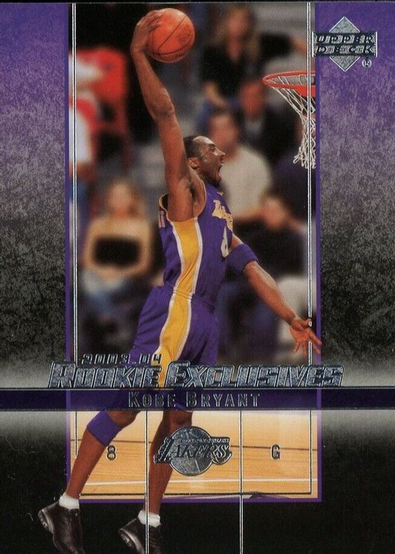 The Kobe Bryant 2003 Upper Deck Rookie Exclusives #59 Base card in Raw condition has moved up $2.84 (+42.6%) in the last 30 days and was last sold for $9.50 .