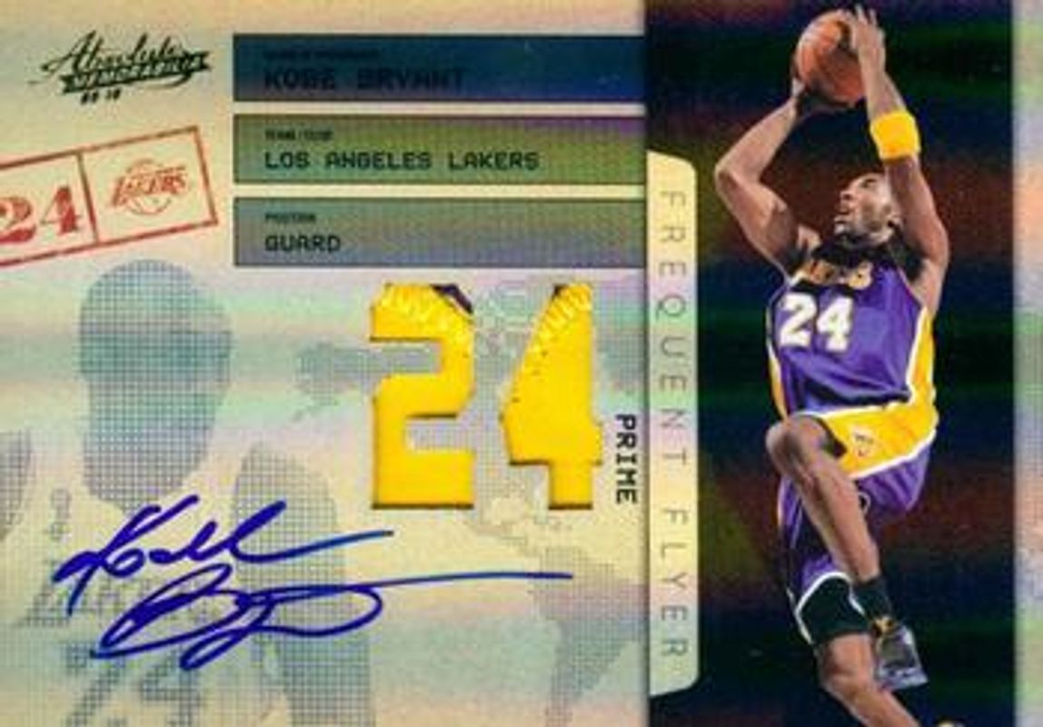 The Kobe Bryant 2009 Absolute Memorabilia #5 Frequent Flyer Materials Prime Jersey Number Signatures /5 card is 1 of 68 Kobe Bryant's card variations in the 2009 Absolute Memorabilia set being tracked by Sports Card Investor, including Base /499, Retail /499, Spectrum Platinum /25, Hoopla Materials - Prime, and Hoopla Materials Prime - Jersey Number.