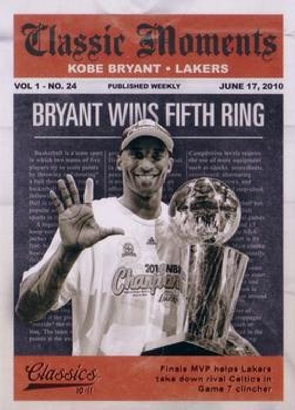 The Kobe Bryant 2010 Classics #9 Classic Moments card is 1 of 24 Kobe Bryant's card variations in the 2010 Classics set being tracked by Sports Card Investor, including Base /999, Timeless Tributes Silver /250, Timeless Tributes Gold /100, Timeless Tributes Platinum /25, and Timeless Tributes Black /1.