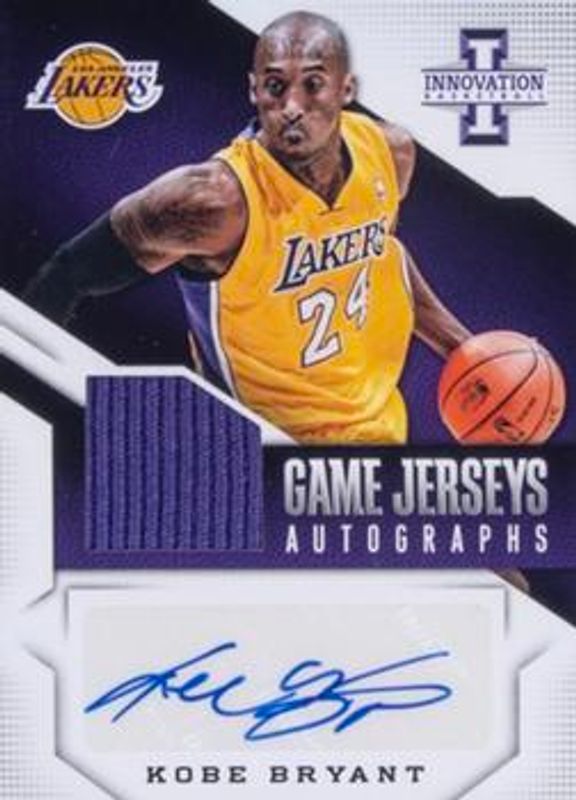 The Kobe Bryant 2013 Innovation #26 Game Jerseys Autographs /35 card is 1 of 21 Kobe Bryant's card variations in the 2013 Innovation set being tracked by Sports Card Investor, including Juggernauts, Rookie View - Purple, Top Notch Autographs /325, Memorable Memorabilia /299, and Rookie View /199.