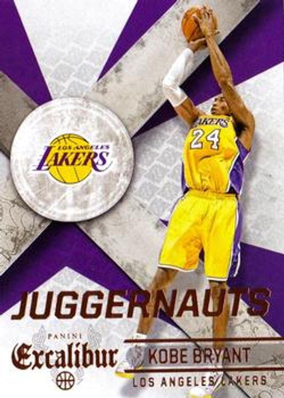 The Kobe Bryant 2014 Excalibur #15 Juggernauts card is 1 of 50 Kobe Bryant's card variations in the 2014 Excalibur set being tracked by Sports Card Investor, including Base, Blue, Knights Templar, Orange, and Silver /49.