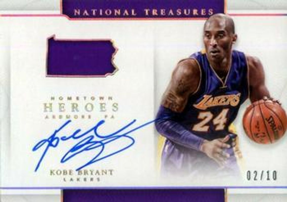 The Kobe Bryant 2016 National Treasures #2 Hometown Heroes - Gold /10 card is 1 of 93 Kobe Bryant's card variations in the 2016 National Treasures set being tracked by Sports Card Investor, including Logoman Autographs Printing Plates Black /1, Logoman Autographs Printing Plates Cyan /1, Logoman Autographs Printing Plates Magenta /1, Logoman Autographs Printing Plates Yellow /1, and Game Gear /99.