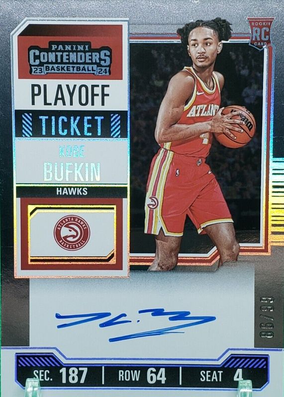 2023-24 Contenders Kobe Bufkin RC Playoff Ticket Auto #85/99 Hawks