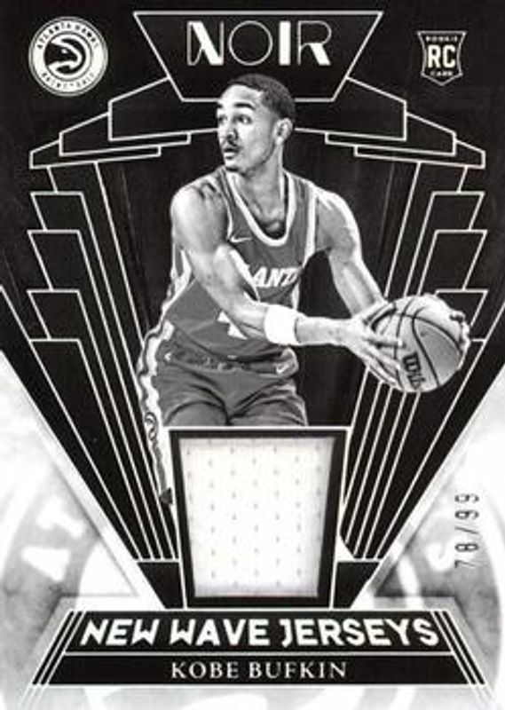 The Kobe Bufkin 2023 Noir #NWJ-KBU New Wave Jerseys /99 Rookie card is 1 of 62 Kobe Bufkin's card variations in the 2023 Noir set being tracked by Sports Card Investor, including #157 Base /99, #344 Base /99, #386 Base /99, #187 Base /99, and #304 Base /99.