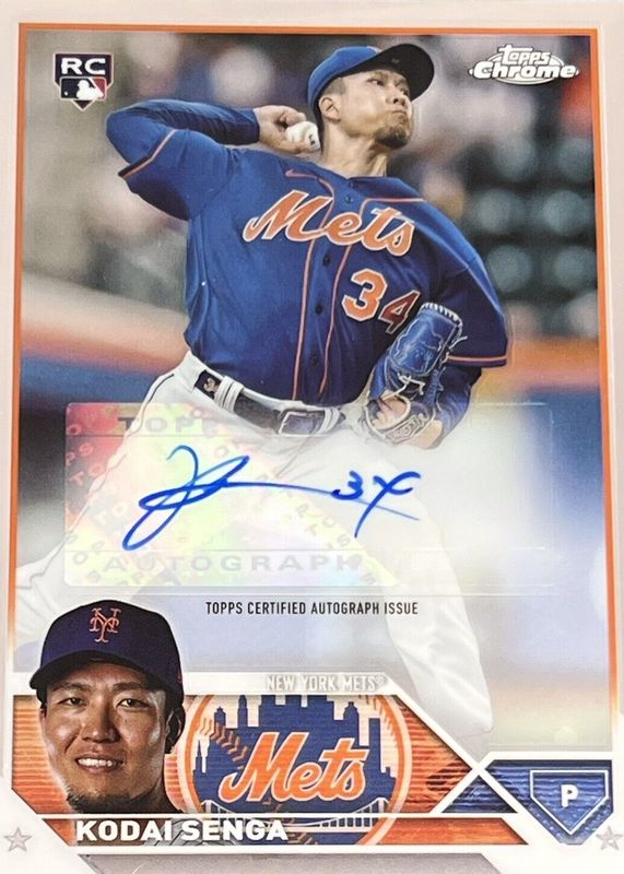 The Kodai Senga 2023 Topps Chrome Update #AC-KSE Autographs Rookie card in Raw condition has not changed in price in the last 30 days and was last sold for $29.01 .
