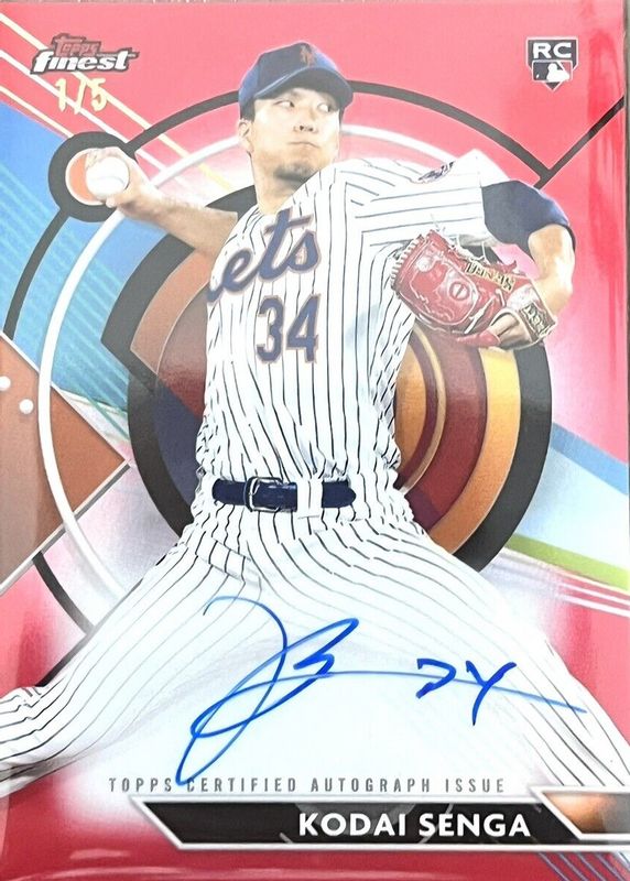 The Kodai Senga 2023 Topps Finest #FA-KSA Finest Autographs - Red Refractor /5 Rookie card in Raw condition has not changed in price in the last 30 days and was last sold for $280.00 .