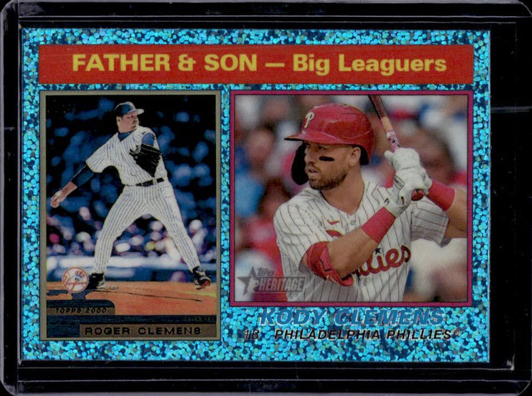 The Kody Clemens 2025 Topps Heritage #67 Chrome - Aqua Sparkle Refractor card is 1 of 17 Kody Clemens' card variations in the 2025 Topps Heritage set being tracked by Sports Card Investor, including Base, Black Border, Dark Blue Border, Dark Green Border, and Dark Yellow Border.