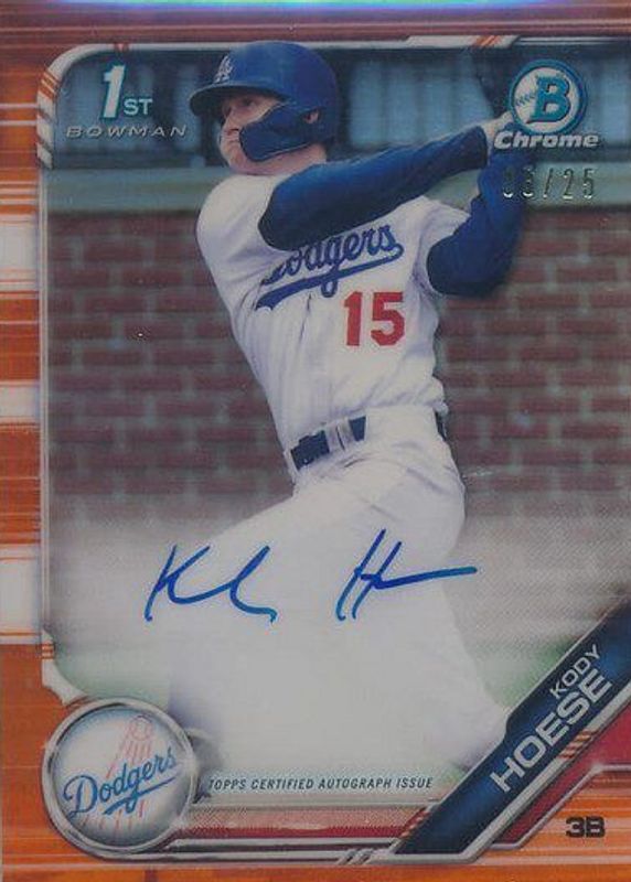 Best Prices Available For Sale of Kody Hoese 2019 Bowman Draft #CDA-KH Chrome DP Auto - Orange Refractor /25 (1st)