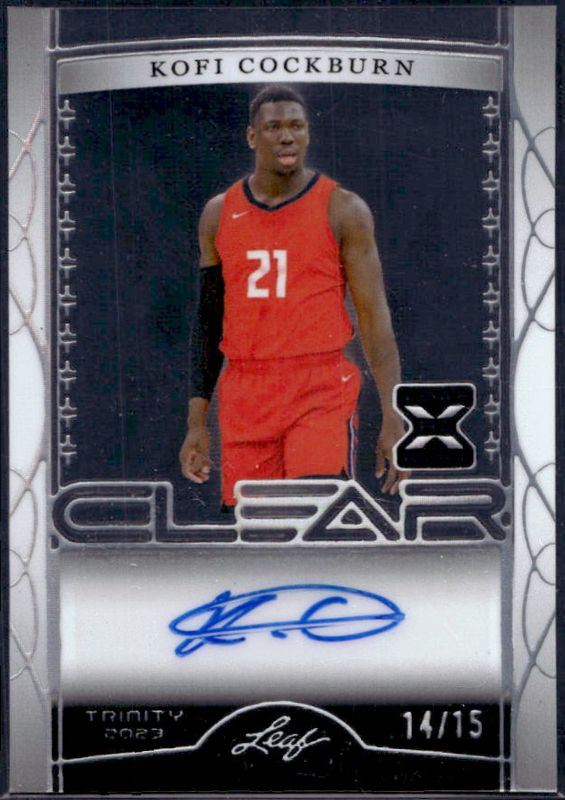 Kofi Cockburn 2022 Leaf Trinity #CA-KC2 Clear Auto - Holo Silver /15 RAW Price Guide