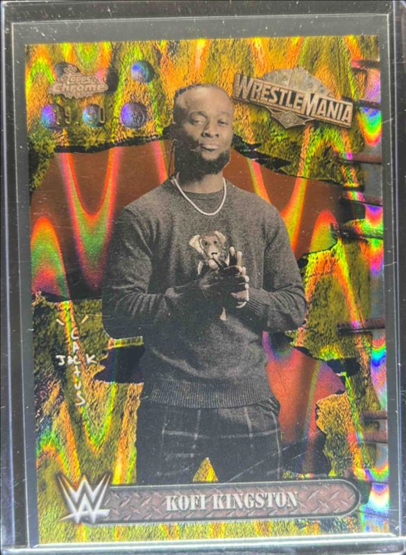 Kofi Kingston 2025 Topps Chrome WWE Cactus Jack x Wrestlemania #22 Gold Ray Wave Refractor /50 RAW Price Guide