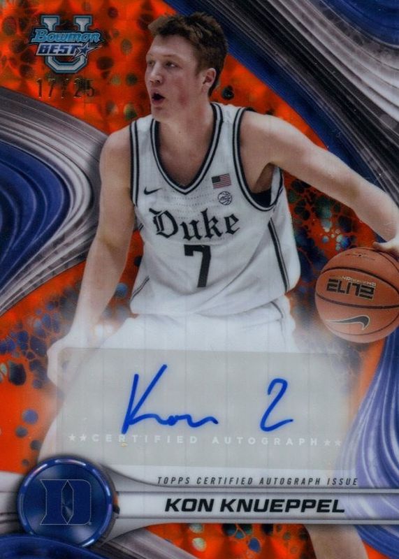 Best Prices Available For Sale of Kon Knueppel 2024 Bowman Best University #B24-KKN Best of 2024 Autographs - Orange Geometric Refractor /25