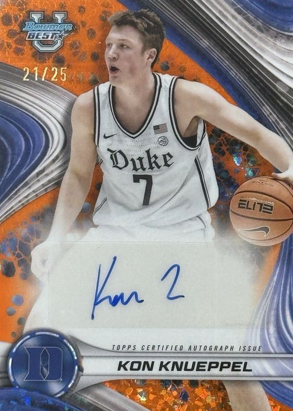 Kon Knueppel 2024 Bowman Best University #B24-KKN Best of 2024 Autographs - Orange Mini-Diamond Refractor /25 RAW Price Guide