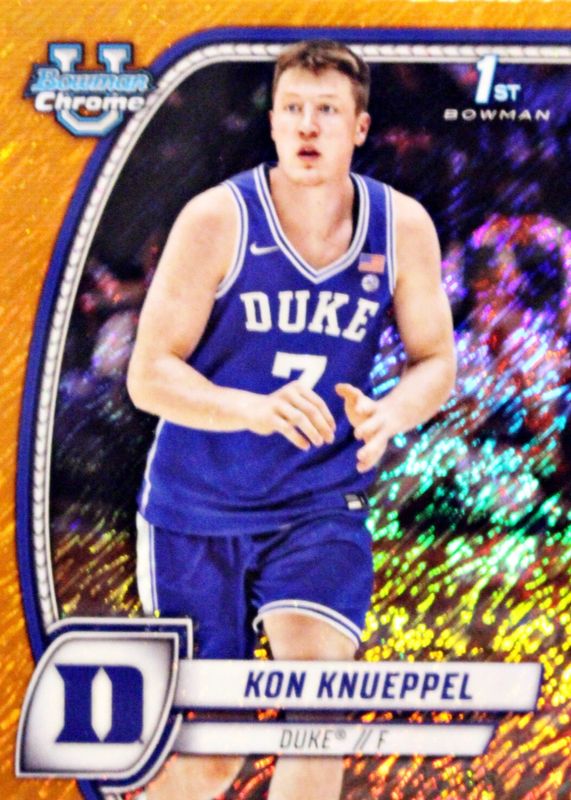 Kon Knueppel 2024-25 Bowman U Chrome 1st Bowman Orange Shimmer 21/65 #48 Duke